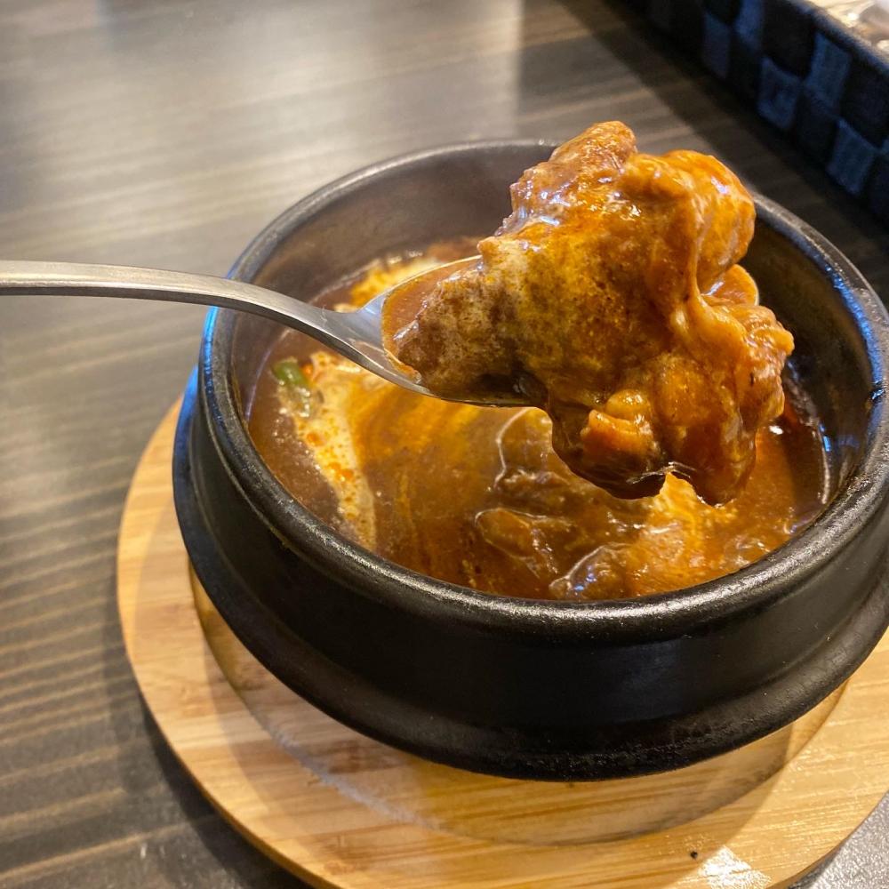 まず、牛すじの大きさにびっくり。写真でも分かるように、スプーンに収まらないほど、大きくカットされた黒毛和牛の牛すじがゴロゴロ入っています。ホロホロかつプルプル、お肉の柔らかさに感動します。