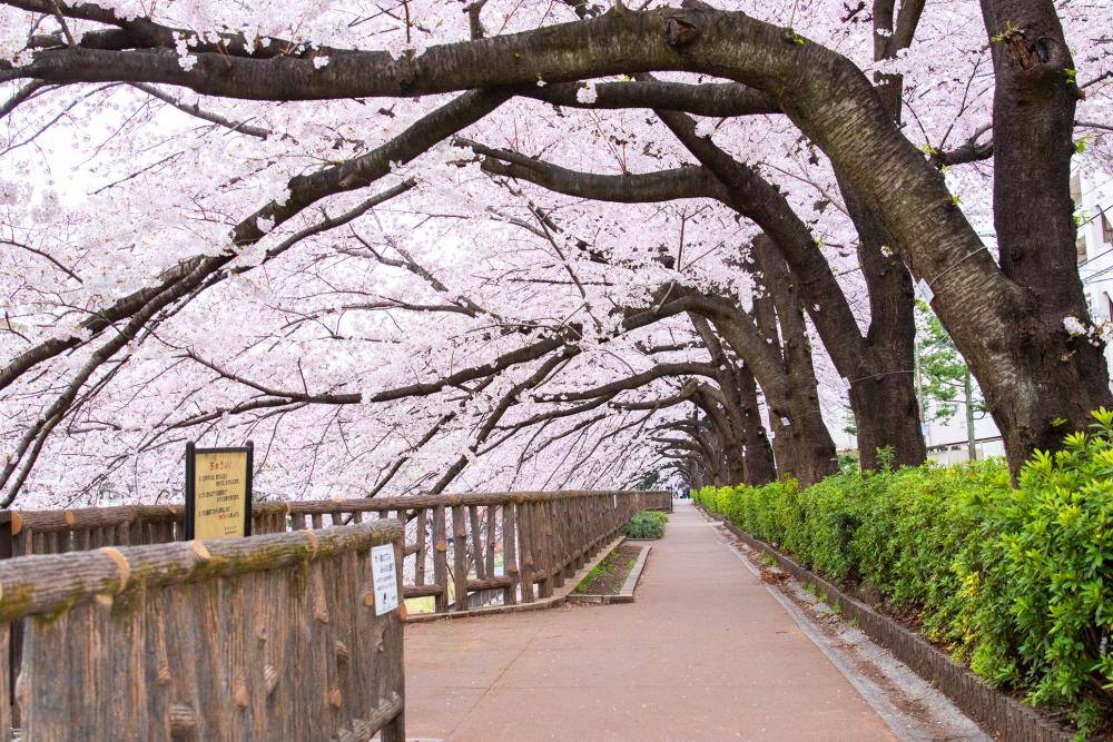 駅近で練馬区の桜を楽しみたい、という方におすすめなのが山下橋の桜。ここは練馬高野台駅から歩いてすぐのところにあるスポットで、西武線と交差する石神井川沿いにあります。川の両側に桜が植えられているので、橋の上からなら両側に並ぶ桜を写真に収めることもできます。