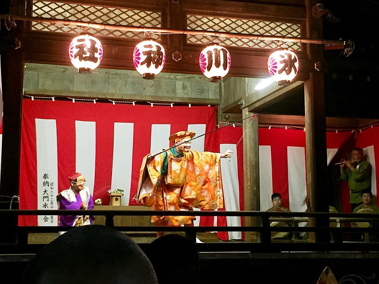 日曜日の14時から、4人の巫女が神様に奉納するために社殿で披露する巫女舞「悠久の舞」は必見! その後、神楽殿において「石山社中」による「武州里神楽」が奉納されます。演目はいくつかありますが、笛や太鼓などの演奏に合わせ、コミカルな所作を交えながらストーリーが進んでいくので、お子さんでも楽しみながら練馬の文化に触れることができます。
